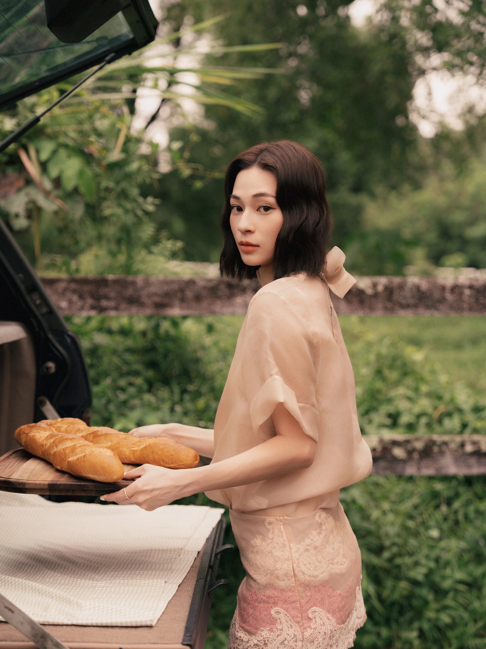 Soft as rose petals and twice as lovely. A sheer flutter-sleeved beauty ornated gently at the back.